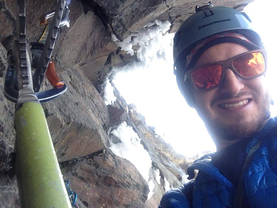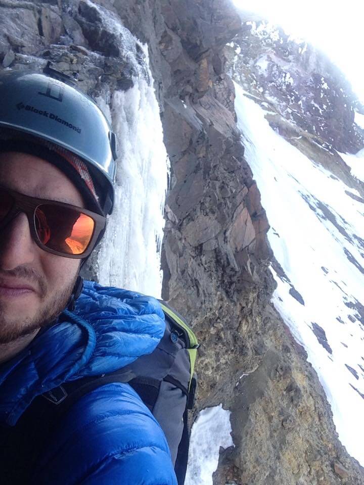 Ya encramponado me dispuse a continuar sobre roca congelada hasta salir a una enorme repisa donde busqué por varios minutos cómo colocar una reunión a prueba de bombas para asegurar a José. 4 cams bastarían para evitar cualquier susto. José escaló e inclusive decotó mi crux. Es una máquina de fuerza que no cabe duda de que será uno de los alpinistas del futuro.