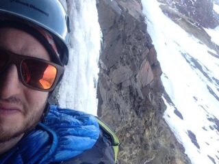 La rampa de nieve sin crampones era una resbaladilla de hielo derretido hasta que nos posamos debajo de la sección donde antes había un candelabro. La falta de nieve nos hizo perder dos metros del nivel donde antes montábamos la reunión. Estos dos metros exponían roca podrida antes de llegar al slab de Javier y de poder alcanzar el primer clavo que habíamos abandonado antes. José no podía anclarse a nada para asegurarme y sobre las puntas de sus botas y manteniendo el equilibro me comenzó a asegurar. Mientras, sorteaba y probaba decenas de piedras que cada que agarraba me hacían la graciosa broma de desprenderse provocanco que por segundos mi corazón se parara. ¡Desprenderme con alguna de esas rocas significaba llevarme a José conmigo hasta piso!