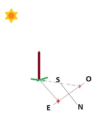 Consiste en encontrar los puntos cardinales de acuerdo a la sombra proyectada por un palo, gracias a los rayos del sol que incidirán en éste.