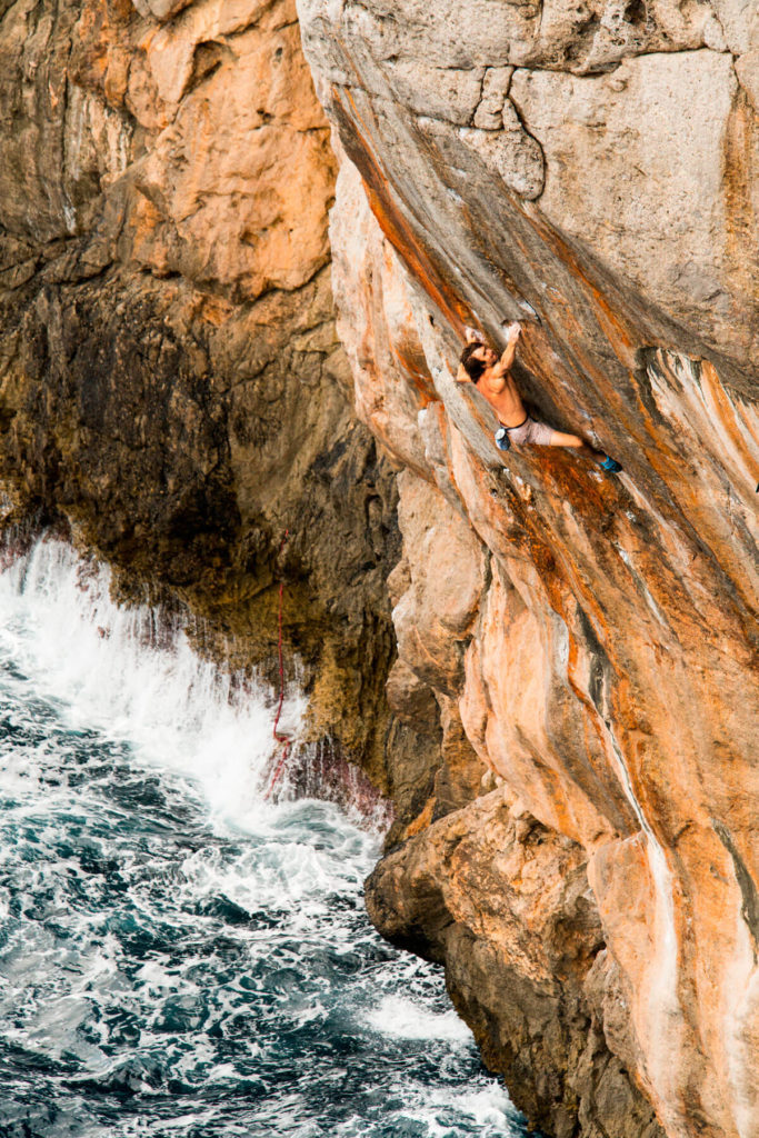 Sharma explora, una vez más, las costas de la Isla de Mallorca, su lugar favorito en el mundo para escalar, pero en esta ocasión se adentra en un proyecto que se encuentra sobre aguas menos calmas.