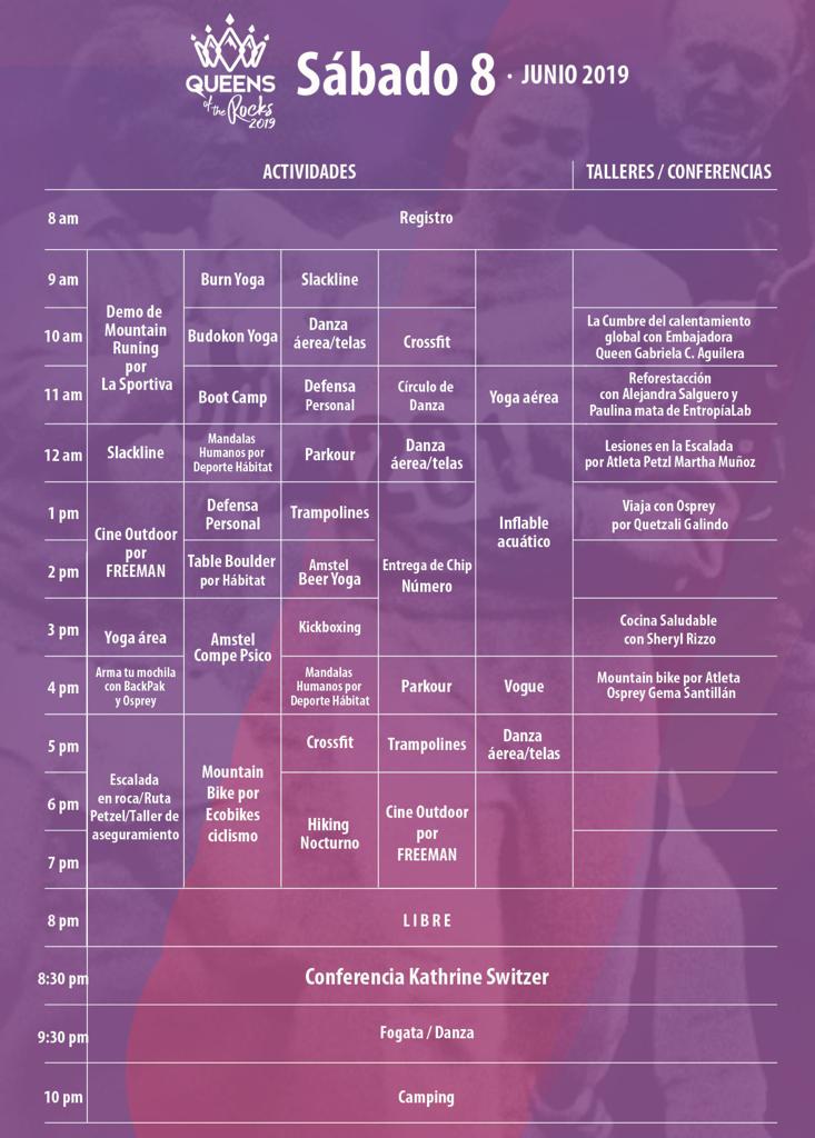 La agenda de la tercera edición de Queens of the Rocks, festival que tendrá lugar los próximos 8 y 9 de junio en en el Parque Ecológico La Huasteca Monterrey N.L., está llena de actividades de todos los estilos, pensada para satisfacer las necesidades y retos de las mujeres que asistan.