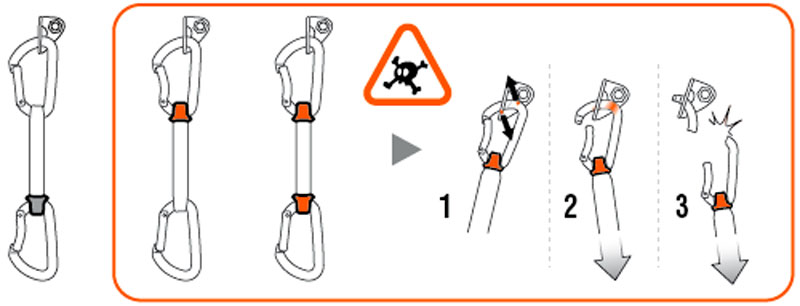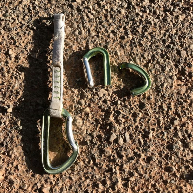 Lo segundo debió haber sido comprobar que ningún mosquetón de los que van a la chapa estuviera inmovilizado. Y tercero, si hacemos una búsqueda rápida en internet comprobaremos que cualquier mosquetón se puede romper si no está puesto correctamente, independientemente de si está fijado a la cinta exprés o no”.