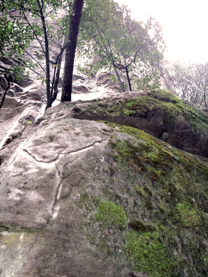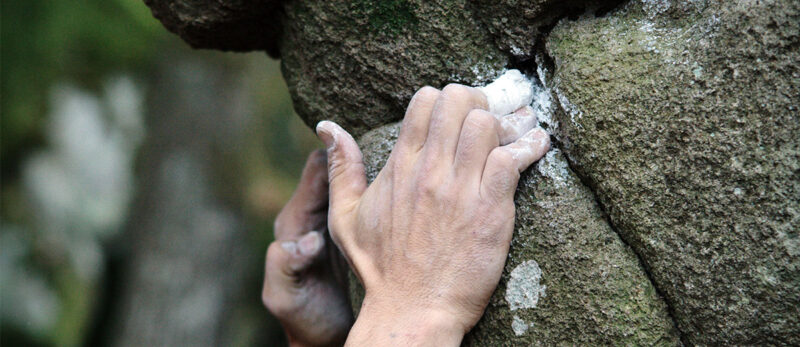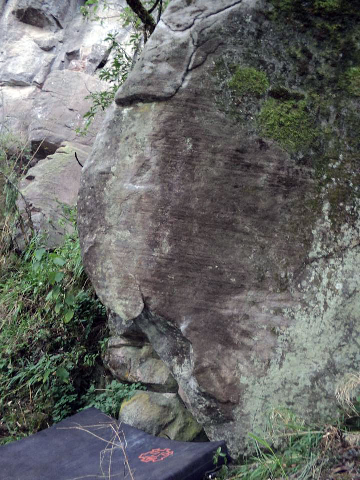 [dropcap size=big]E[/dropcap]ra una mañana fría de invierno cuando nos dimos a la tarea de limpiar un nuevo bloque que ya teníamos ubicado. Se encuentra en una cañada en el bosque mágico de Las Manzanas, a un costado del sector Domdo. Con cepillo en mano empezamos a remover musgo, tierra, ramas y con cada cepillada fue cobrando vida una línea nueva en este gigante de piedra. La mañana siguió avanzando y el musgo parecía interminable pero cada cepillada era recompensada con el hallazgo de un nuevo agarre: una regleta por aquí, un sloper por acá, un lateral por allá y poco a poco como surgido de la nada estábamos frente a este nuevo boulder perfecto que esperó por siglos a ser ascendido por un primer elegido.