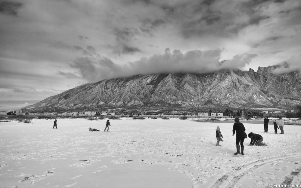 El 2016 había dado oportunidad de foto para capturar las montañas de Monterrey cubiertas de nieve, pero nada como lo que ocurrió la noche del jueves 7 de diciembre del presente. El marco típico del cielo regio conformado por el Cerro de la Silla, el Cerro de las Mitras y la Meseta de Chipinque -que oscilan entre los 1,800 y 2,200 msnm-, fue un espectáculo.