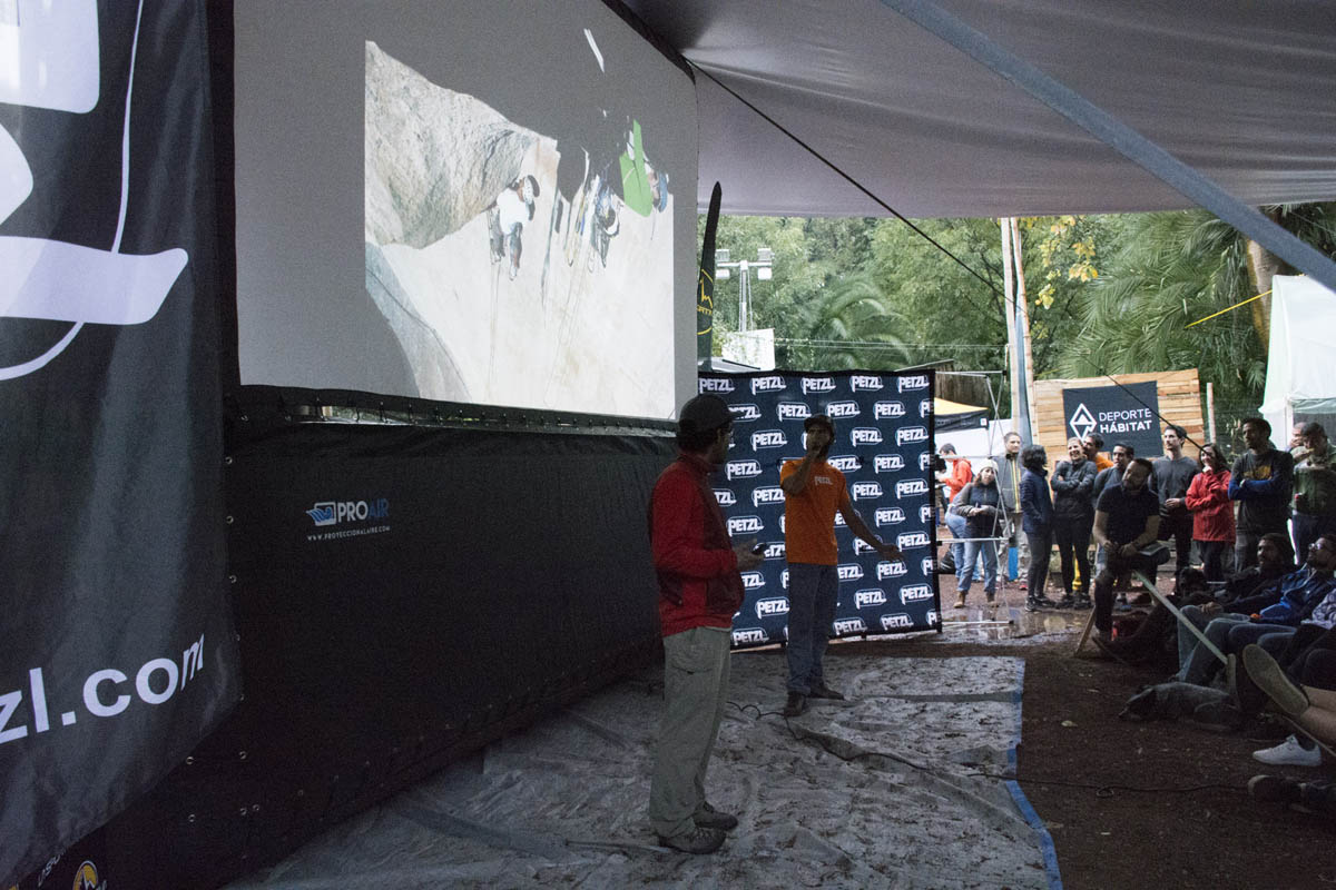En punto de las 19:00 inició la proyección de los cortometrajes. En la muestra pudimos ver filmes como “Young Guns” donde podemos ver cómo sus protagonistas, Ashima Shiraishi de 15 años y Kai Lightner de 16, están llevando el deporte a límites nunca antes vistos. “Boys in the Bugs” narra la surreal experiencia de dos escaladores en los Bugaboos al conseguir (después de 4 años), la ruta más difícil de la historia en su tipo. “Brette”, protagonizado por Brette Harrington, quien realiza un viaje global desde su casa de granito en Squamish a las grandes paredes de Yosemite, seguido por su gran Solo Integral en Patagonia. “Rad Dad” cortometraje en donde Mike Libecki, viaja a los rincones más remotos del globo superando el reto de ser padre de una niña.