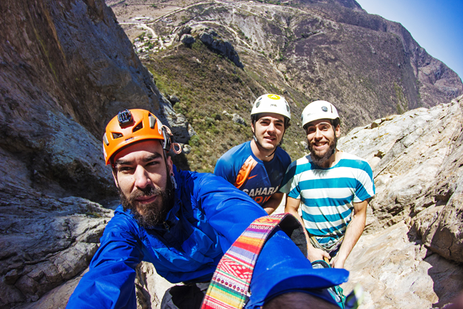 Los primeros cinco largos los equipamos de punta, que es un estilo lleno de aventura y con un constante sentimiento de incertidumbre generado por escalar en una pared virgen, en tanto que el sexto largo, que es la cereza del pastel y sin duda alguna el crux de la ruta, lo equipamos de rapel.