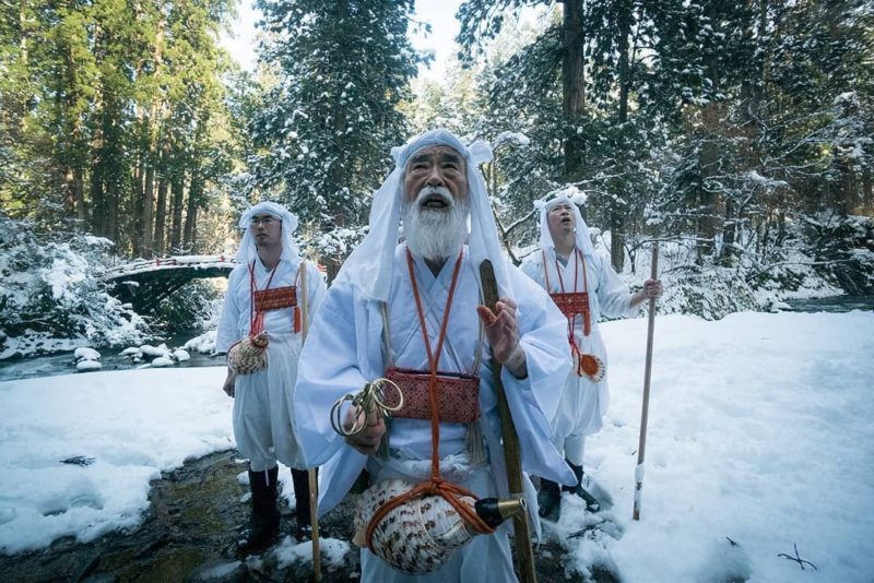 Shugendo es una antigua religión dedicada a la autodisciplina y la superación personal a través del entrenamiento y los rituales en estas montañas. Los Yamabushi consideran que el dejar que la fuerza de la naturaleza entre en sus cuerpos da lugar al verdadero fortalecimiento espiritual, a partir del cual las cosas mundanas pierden centralidad.