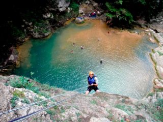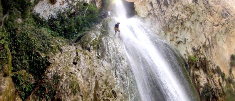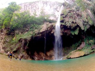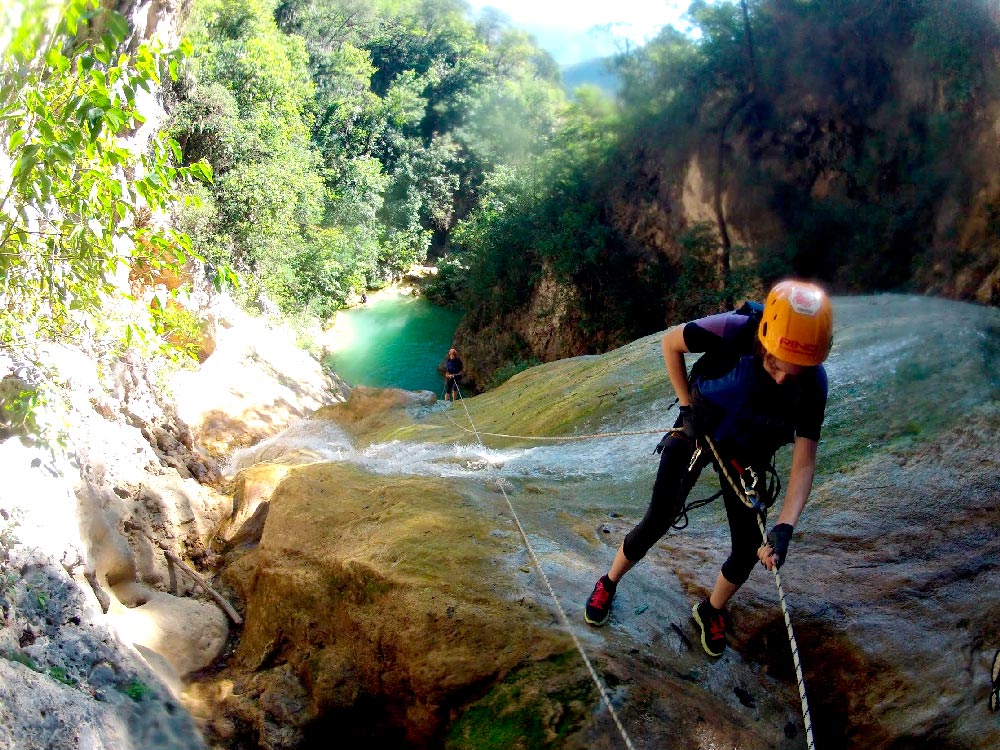 El famoso tour de los 7 rapeles es uno de los más impresionantes y divertidos recorridos de cañonismo en Nuevo León, se encuentra en la comunidad de Potrero Redondo en Santiago, N.L., un pueblo mágico perfecto para practicar el cañonismo acuático.