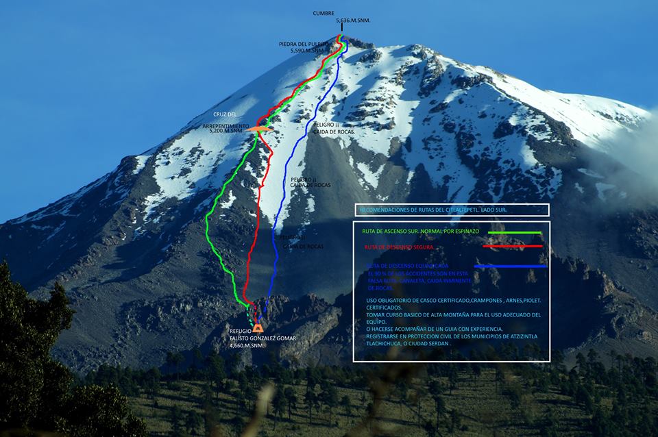 Conoce y respeta las rutas de ascenso y descenso de la cara sur del Pico de Orizaba. Sigue estos consejos de seguridad y evita accidentes.