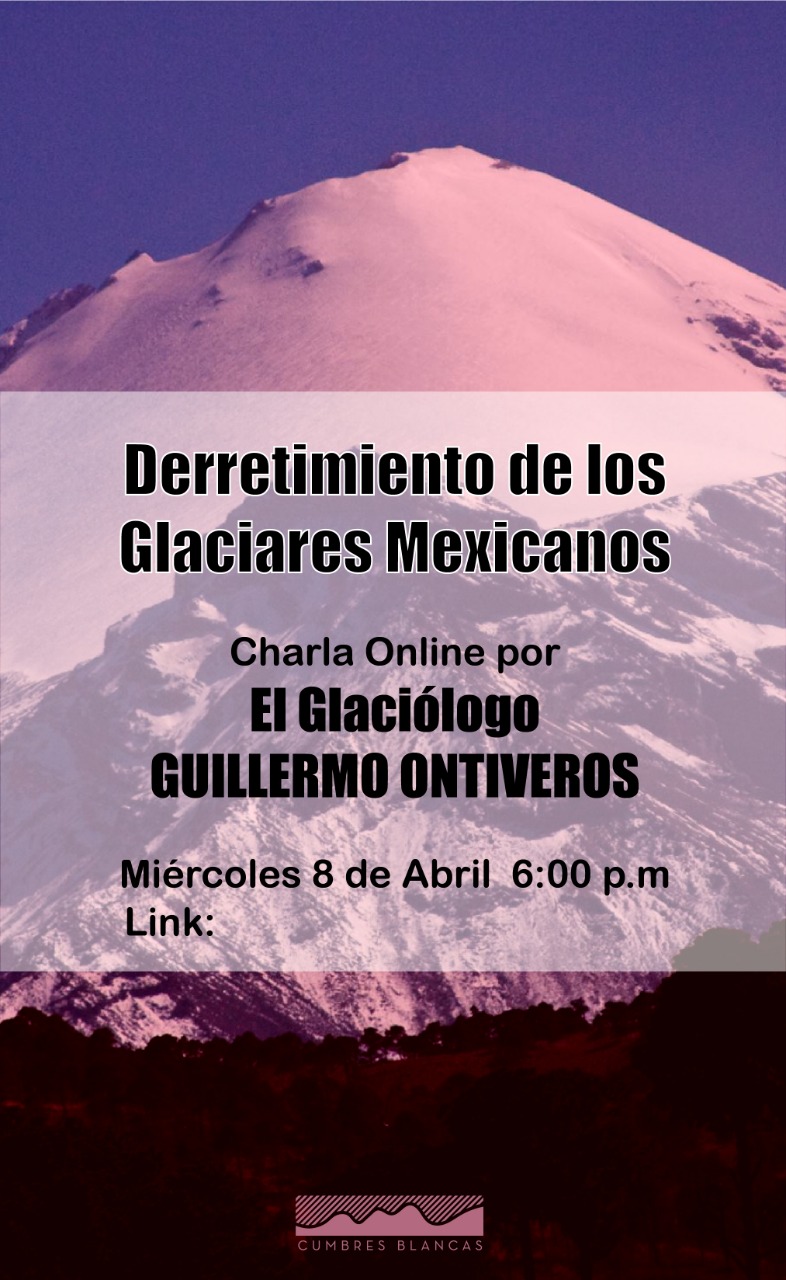 Organizado por Cumbres Blancas México, un proyecto transdisciplinar que busca informar, concientizar y unir voluntades para generar acciones que ayuden a la sociedad a mitigar los efectos adversos del cambio climático y adaptarse a ellos, la charla Derretimiento de los Glaciares Mexicanos será impartida por Guillermo Ontiveros, gran especialista de los glaciares mexicanos, quien hablará sobre la historia, las amenazas que viven estos gigantes del hielo por el aumento de la temperatura en la atmósfera, sus efectos sobre las comunidades y las acciones que podemos tomar.