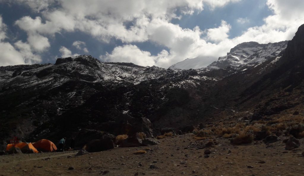 La noche no fue placentera y tampoco logré conciliar el sueño. La emoción y nervios se metieron a mi sleeping. Por momentos me invadía la duda de si iba a ser capaz de subir mi primera montaña por arriba de los 5 mil metros. A las 12 de la mañana, sin dormir y quizá con más dudas que certezas empecé a preparar mi equipo para el ascenso.