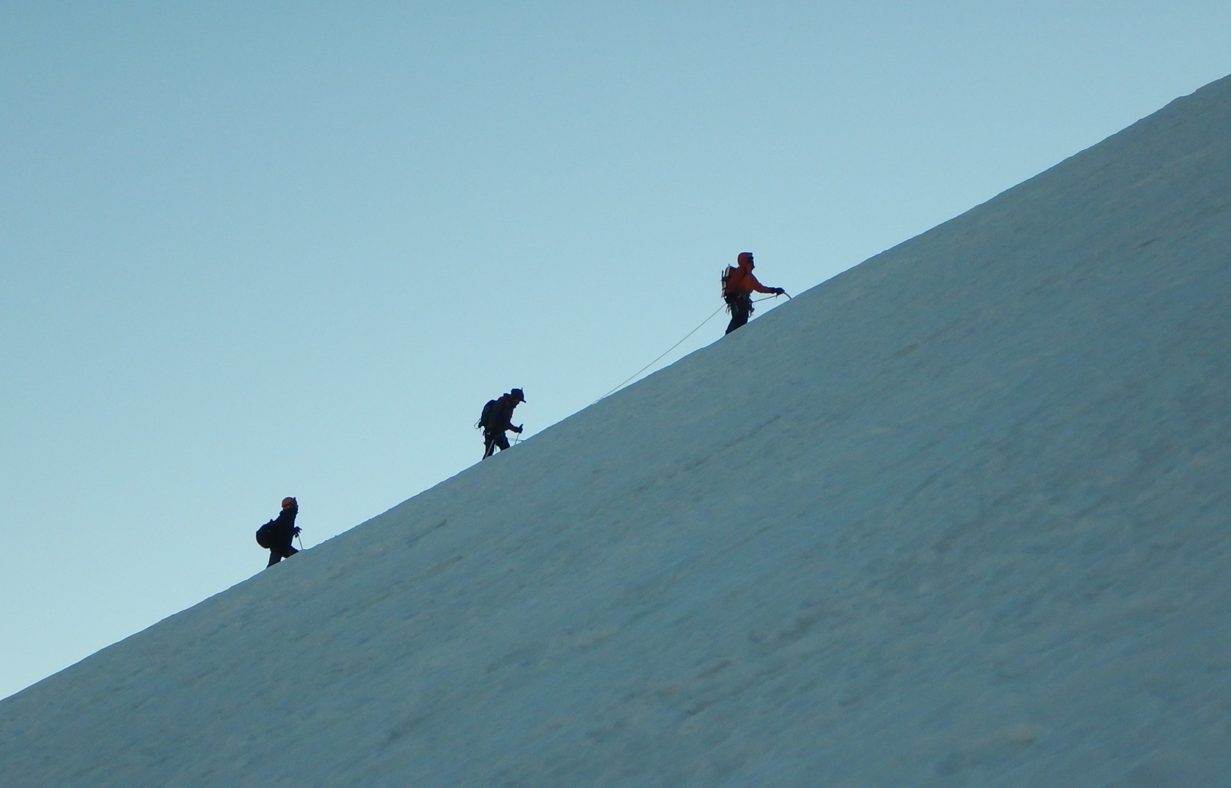 Finalmente, el sol empezó a salir en el horizonte iluminando toda la montaña. Al ver todo lo que nos faltaba por recorrer, decidí enfocarme en dar un paso a la vez, pero el glaciar parecía no terminar. Hasta que en cierto momento nuestro guía nos avisó que estábamos por terminar el ascenso y que nos esperaba una vista increíble.