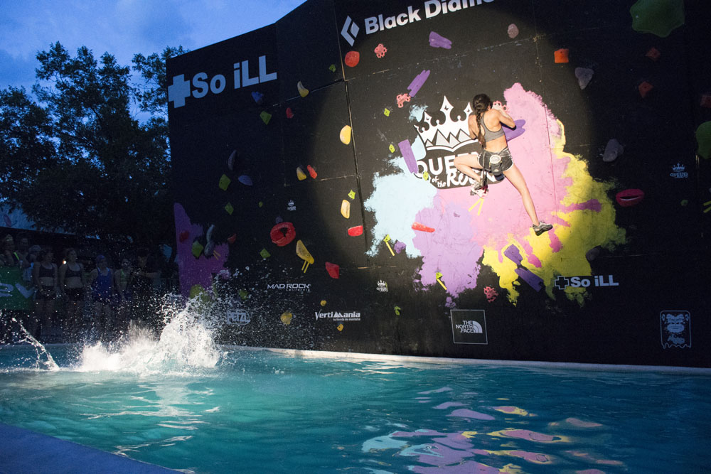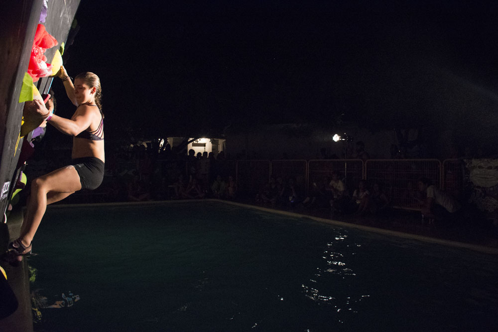 El psicobloc, por su parte, convocó a 25 queens de alto calibre para competir por completar numerosos problemas en los que se batalló no solo con la dificultad del bloque, sino con caer al agua. Fue una compe diferente y necesaria para mostrar una más de las posibilidades que da la escalada, ya sea por aventura o simple recreación, para llevar más lejos los límites. Después de una reñida y pareja competencia, Lary Arce se alzó con el primer lugar del evento.