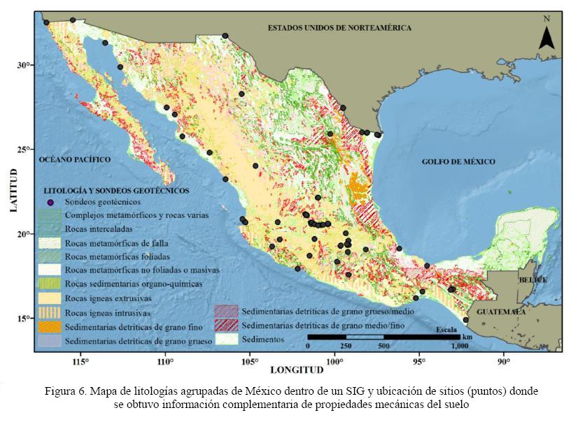 Particularmente en México hay una clara predominancia de la roca caliza y volcánica (riolita, basalto y toba volcánica); no obstante, el granito y la arenisca también están presentes.
