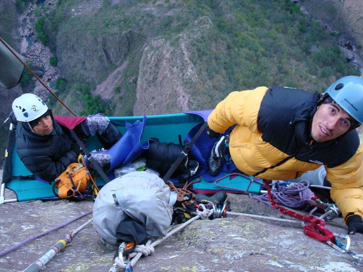 “Una vez en Perú quisimos hacer un ascenso ligero y rápido a una ruta. Nos propusimos hacerlo en muy pocas horas, con material básico, pero nos agarró una tormenta y tuvimos que dormir a más de 5ooomsnm, a la mitad de la nada, toda la noche a menos 30 grados.” – Daniel Navarro