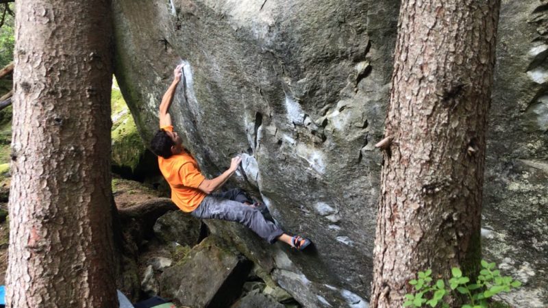 Franz ha encadenado alrededor de ochenta V10’s y V11’s y hace unos meses ascendió su décimo V12, La Trucha Feliz, en Mineral del Chico. Con ánimos de subir su grado y tras encadenar en sus primeros días en Magic Woods otro clásico V12, Never Ending Story Part 1, decidió probar Steppenwolf.