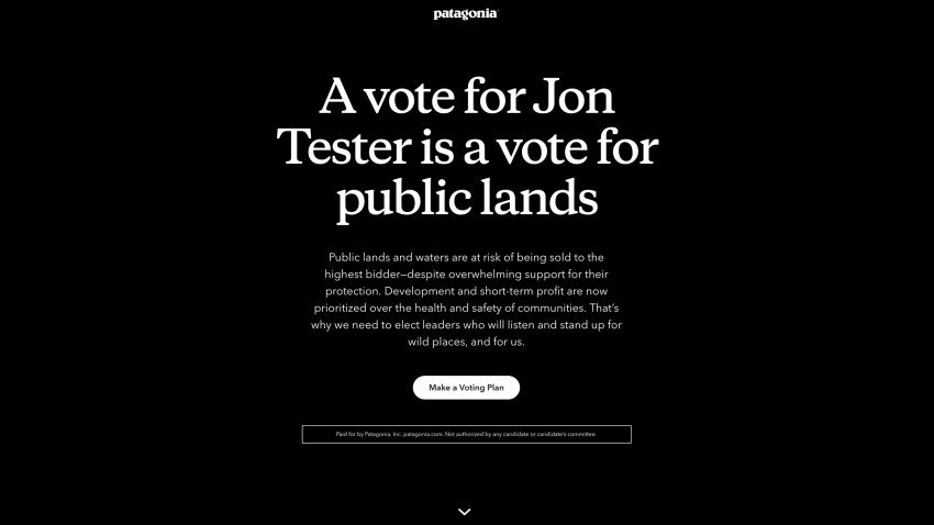Sin embargo, en los EE.UU. no está bien visto por la sociedad que las empresas privadas divulguen sus posiciones políticas. Pero eso hizo Yvon Chouinard. En el sitio de la empresa hay una declaración que afirma, “la democracia depende de personas que salen a votar”, recomendando a los habitantes de Nevada y Montana a votar por Jacky Rosen (Nevada) y Jon Tester (Montana). En la historia de la industria al aire libre, esta es la primera vez que una empresa alienta a los consumidores a votar por candidatos específicos para cargos nacionales.