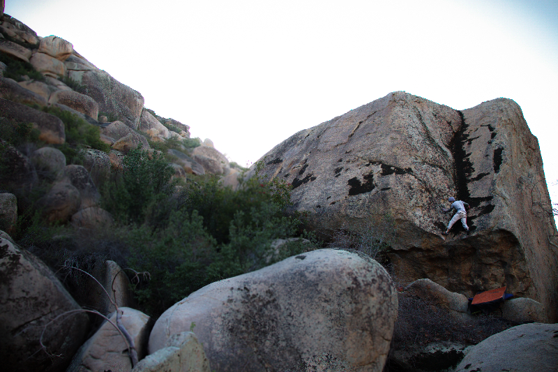 (S): Llegamos a Ensenada, donde el clima básicamente cambia cada cinco minutos, pero aun estando en la costa, se presta mucho para escalar debido al frío seco y con viento. Desde el primer día fuimos a explorar algunas áreas que “Mutante” había ubicado anteriormente. No es necesario moverse más de 20 minutos para encontrar un mar de boulders, en cualquier dirección a la que te dirijas. En lo personal, nunca había visto tanta roca y hace mucho que no me emocionaba tanto por ver una zona de escalada, pero no sólo encontramos boulders sino un sin fin de aventura.