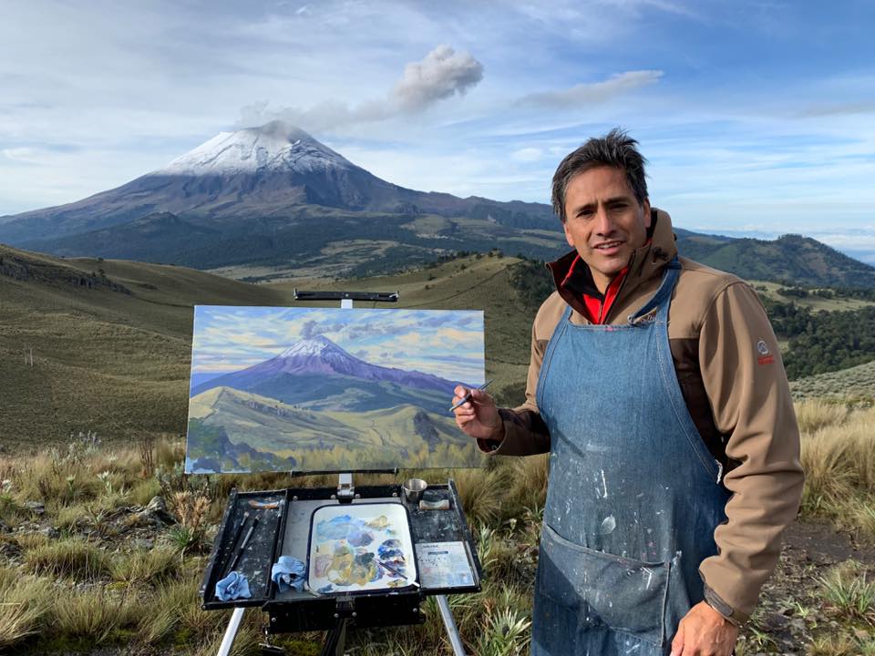 Salir del estudio para pintar los volcanes de México al aire libre, pasión de uno de los más grandes pintores de paisaje en México: Jorge Obregón.