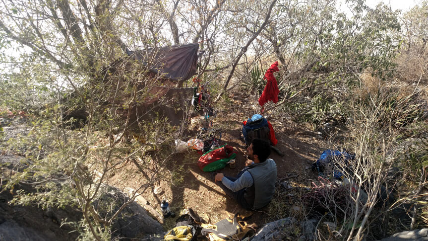 Recibimos equipo usado de Magic Ed para el apoyo de jóvenes escaladores como donativo para nuestro programa de Escalando Fronteras a manera de transmisión de la antorcha: tres viejos cascos y siete zapatos izquierdos de escalada. Es cierto, el equipo no es muy útil, pero el gesto fue muy agradable y motivó a que nuestros jóvenes líderes vinieran a Potrero Chico. Como todos antes de ellos y, sin importar el país o la clase económica, se sorprendieron de las líneas y exploraron con ojos voraces las características de la roca.