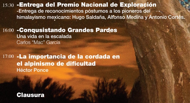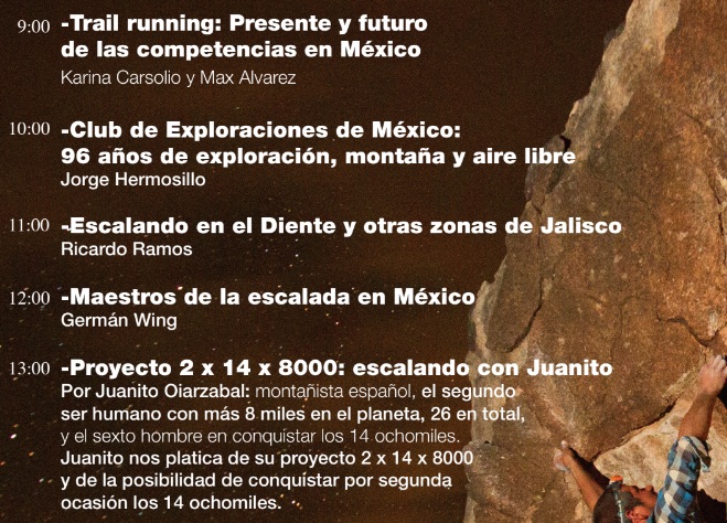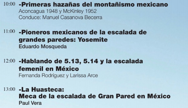 Pláticas, exposiciones, clínicas, conferencias, premios y un buen número de sorpresas te esperan durante cuatro intensos días en los que se reunirán algunos de los máximos representantes del montañismo nacional e internacional.