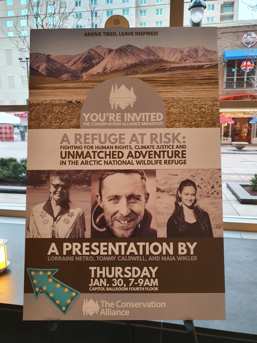 Este fue uno de los ejes centrales de la feria outdoors más grande de América, donde la agenda estuvo respaldada por conferencias y pláticas sobre medio ambiente. Entre ellas, las dirigidas por The Conservation Alliance -Alianza por la Conservación-, que mostró sus resultados de trabajo -han protegido 72 millones de acres, 3,500 millas de ríos y 17 zonas de escalada-, y que tuvo como conferencistas al escalador y activista Tommy Caldwell, a la ambientalista originaria de Old Crow, Yukon, Lorraine Netro y la investigadora y escritora Maia Wikler, quienes hablaron sobre uno de los últimos refugios naturales de la vida silvestre en Estados Unidos, el Arctic National Wildlife Refuge.