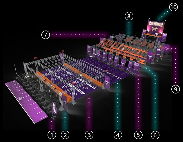 Conquer Heat es un reto de diez estaciones donde pondrás a prueba tu pasión, fuerza y condición física. Todos esos días de entrenamiento tendrán su resultado. Ganará quien complete el circuito en el menor tiempo posible. Habrá premios.
