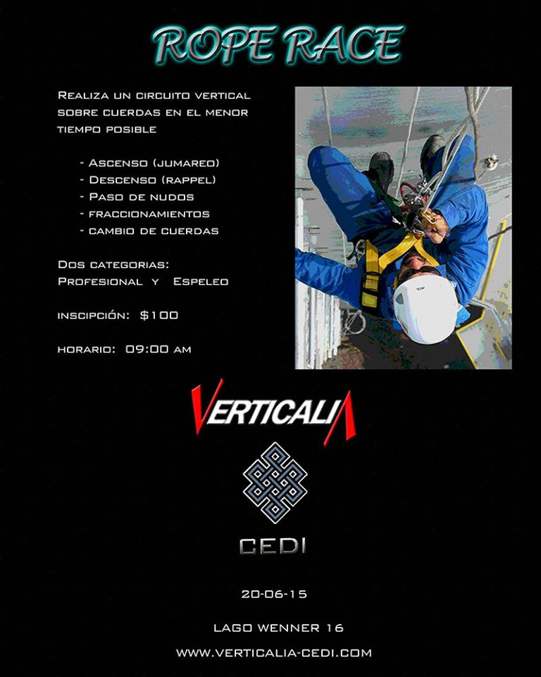 9:00 hrs: Rope Race. Competencia de circuito vertical utilizando técnicas de desplazamiento en cuerdas. MUY interesante.