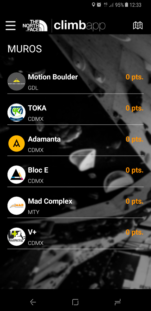 La funcionalidad clave de Climb App es el llevar un registro de los bloques que realices en los muros de escalada participantes. Cada vez que vayas a uno de esos muros podrás hacer check-in y sumar puntos por cada bloque que te anotes (la app checa dónde estás, así que no podrás sumar escaladas desde la cama). Los puntos corresponden al grado del bloque y, de acuerdo a lo que acumules, se determinará tu categoría automáticamente entre principiantes, intermedios, avanzados y mutantes.
