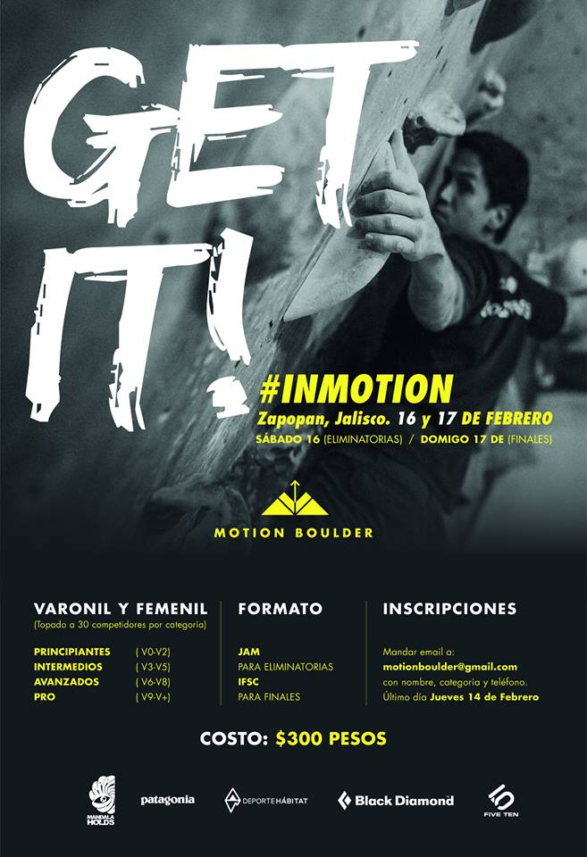 Próximos 16 y 17 de febrero, competencia #GetIt de Motion Boulder, en Zapopan, Jalisco. Compite por grandes premios y reserva tu lugar antes del 14 de febrero.