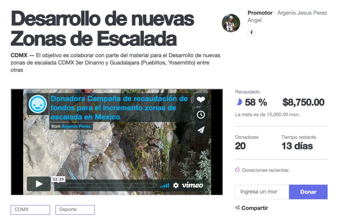 El objetivo de recaudación es de 15,000 MXN que, si hacemos cuentas considerando el número de escaladores en el país, es un objetivo que debería alcanzarse sin mayor problema.