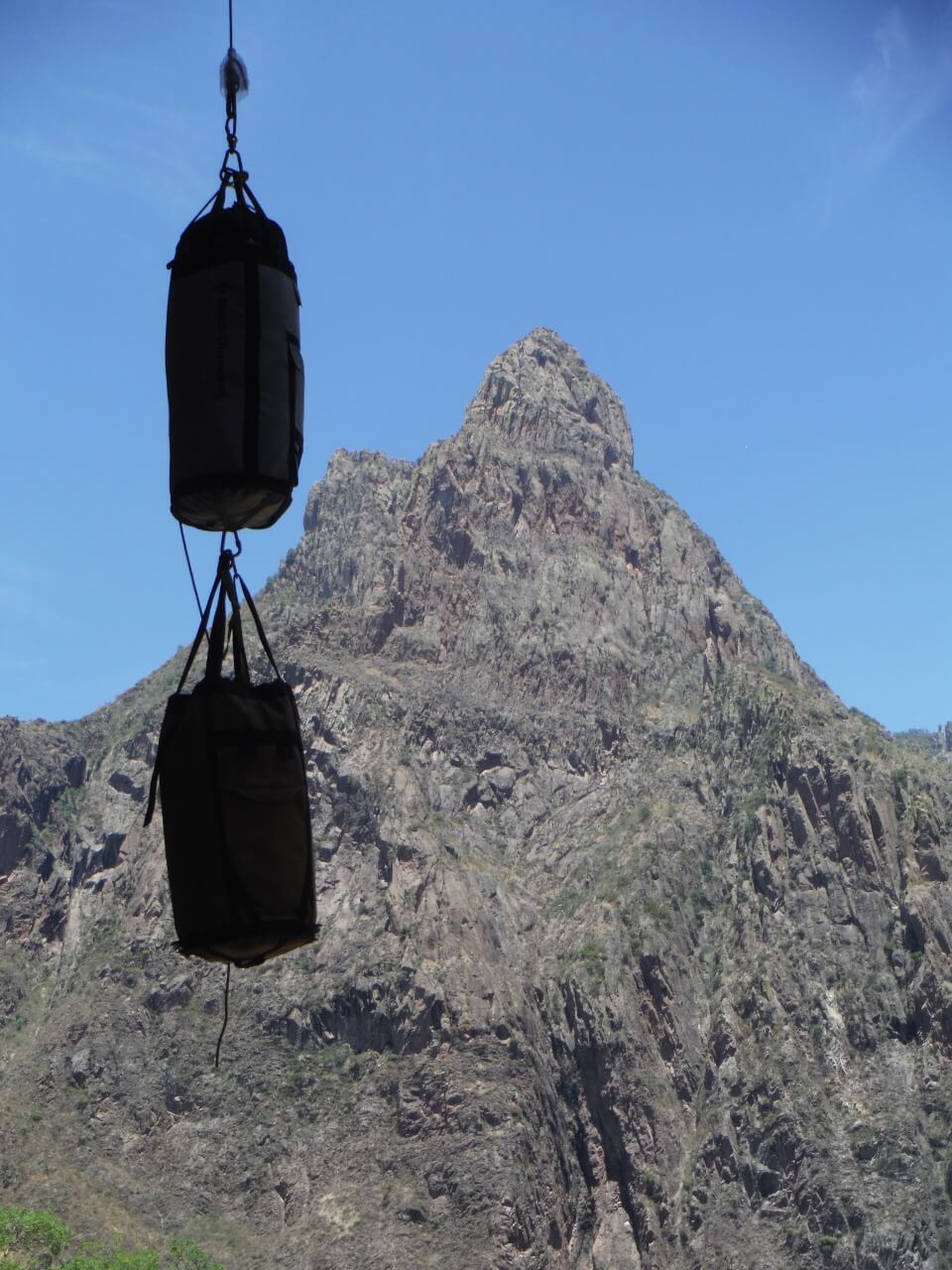 Terminó siendo un A2+/A3 al que Carlos añadió un expansor fijo en un paso sobre un bloque grande, más la reunión. Vendría Paul enseguida a terminar otro largo terrorífico entre 5.9x-5.10x, calló demasiada piedra suelta, controlada y no controlada, afortunadamente todos ilesos y pasamos nuestra primera noche en portaledge doble con bolsa parasito para un tercero.