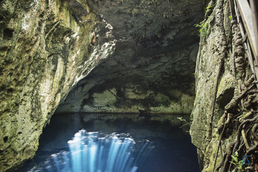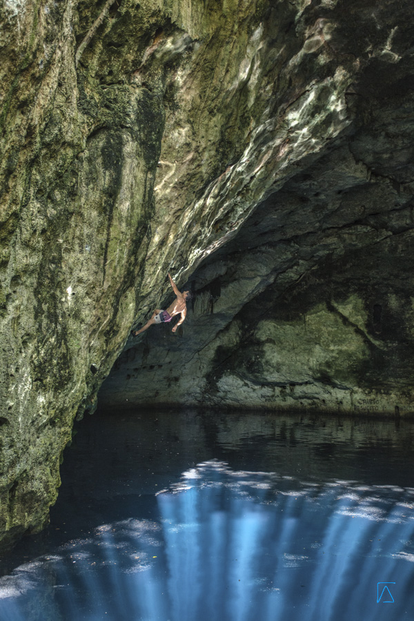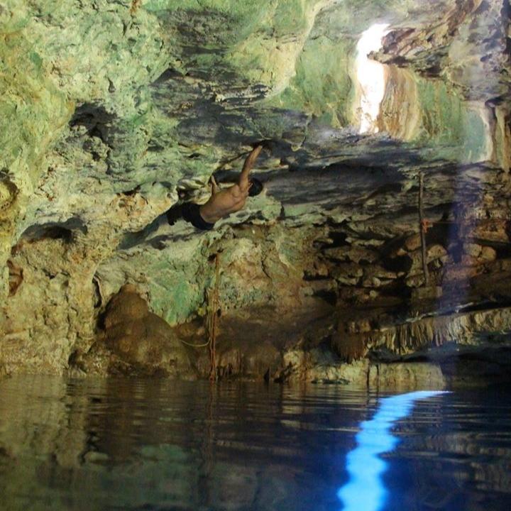«En muchos cenotes la roca se rompe, tiene moho o cae tierra de la parte de arriba. Pero, por ejemplo, el cenote Yax-Ha, uno de los primeros que descubrimos, es muy bueno. Tiene una altura de 8m, entonces el grado propuesto es de boulder y hay cuatro V4, dos V5, un V6 y un V8.» – Adolfo Trujillo