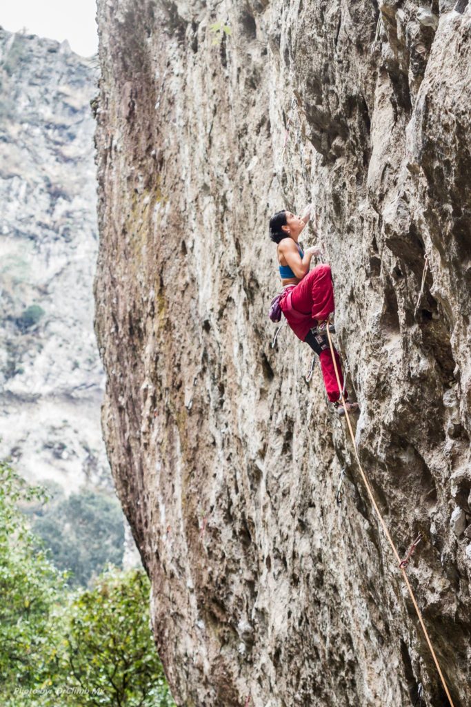 (Q): Tengo muchas ganas de realizar un viaje a El Salto, en Nuevo León y a Guadalajara para escalar cosas distintas. Pero actualmente estoy trabajando “Bell Tunich” (5.13d) en Jilotepec. Otra ruta que me ha cautivado y con la cual ahora estoy más enfocada y motivada. Justo el domingo pasado ya logré hacerla con una caída, así que ansío regresar pronto para encadenarla.
