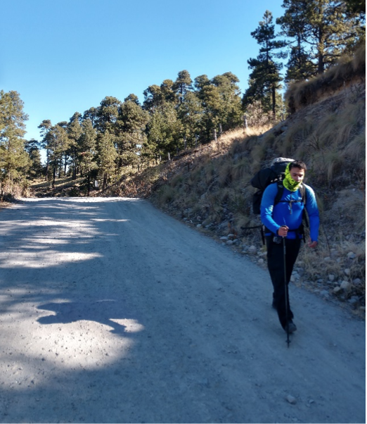 Una vez que tuve identificada la posible línea que seguiría, tocaría encontrar a alguien lo suficientemente loco para sumarse a este proyecto. Invité a diversos amigos, algunos con experiencia en escalada tradicional y artificial, otros solo con conocimientos de escalada deportiva. La respuesta generalmente era positiva, pero sin confirmar fecha y hora. La verdad, no era muy alentador el panorama. Para llegar a la cañada donde se encuentra el Oso, se tiene que hacer un trayecto a pie por la parte posterior al camino de terracería, esta caminata toma aproximadamente dos horas dejando el coche en el estacionamiento del Parque de los Venados, aunado a lo anterior, hay que cargar todo el material (taladro, levas, cuerda, agua, algún lunch, etc), unos 25 kilos aproximadamente, para después, al llegar al pie de pared, estudiar cómo escalarla (mil veces más tentador resulta Jilotepec).