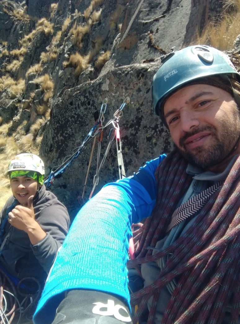 No obstante, como bien dicen por ahí, siempre existe un roto para un descosido, o para este caso un ingenuo para un enajenado. No sé si por insistencia o por compañerismo, finalmente se animó Kevin Hernández Pulido (“el Kevin” para la banda), compañero de embarques ya desde algunos años. Si bien su experiencia en escalada en grieta o artificial es poca, ésta se compensa con la paciencia, el apoyo y la confianza que brinda cuando las cosas se complican en la pared.