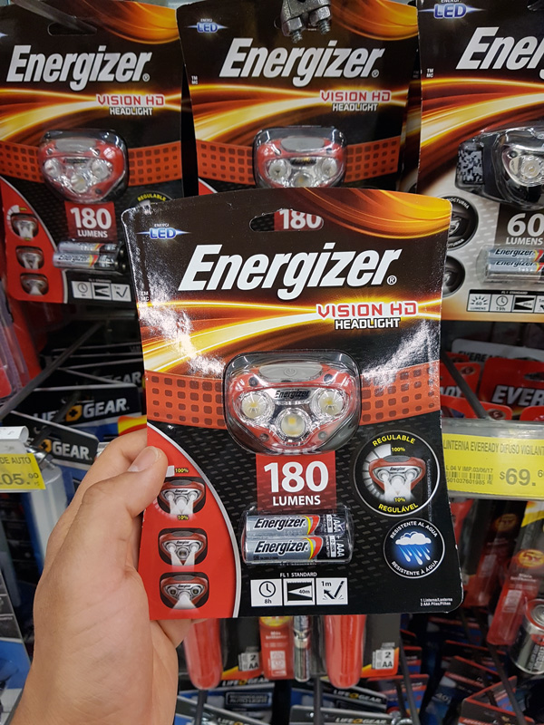 La Energizer Vision HD es campeona en un rubro: la distribución. Puedes encontrarla en supermercados, así que con una visita al súper podrás resolver no llevar lámpara frontal a una salida.
