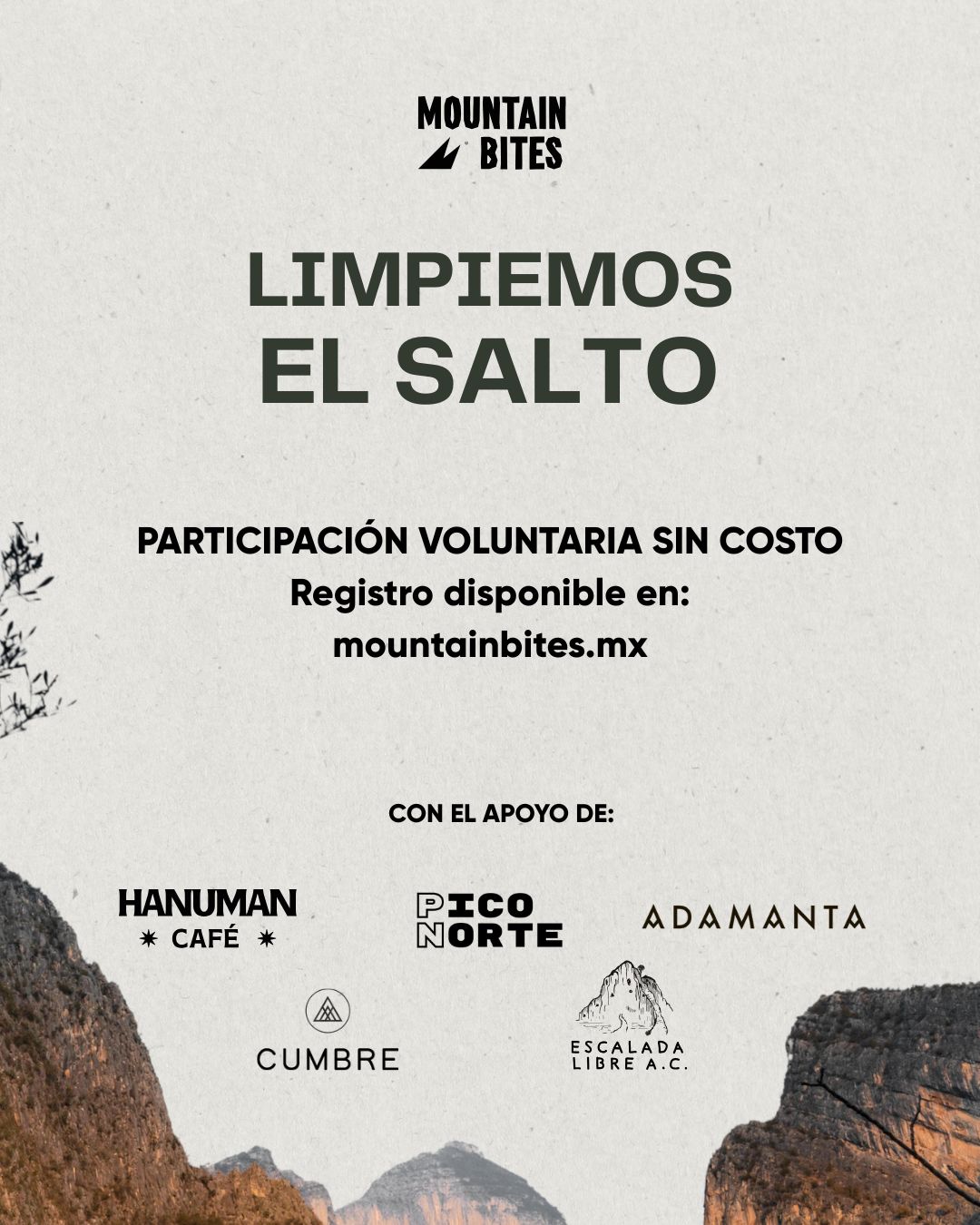 - Registro gratuito: https://www.mountainbites.mx/limpiemos-el-salto