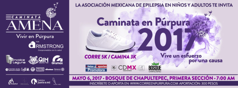 El sábado 6 de mayo será la Camina AMENA Corre en Púrpura 2017, un evento para apoyar a las personas con epilepsia, organizada por la Asociación Mexicana de Epilepsia en Niños y Adultos.