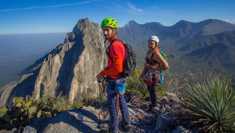 Tiffany Hensley y José David Martínez intentan ascender la ruta de Time Wave Zero, Potrero Chico, en un tiempo menor a 2 horas.