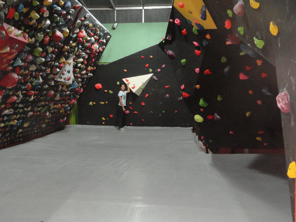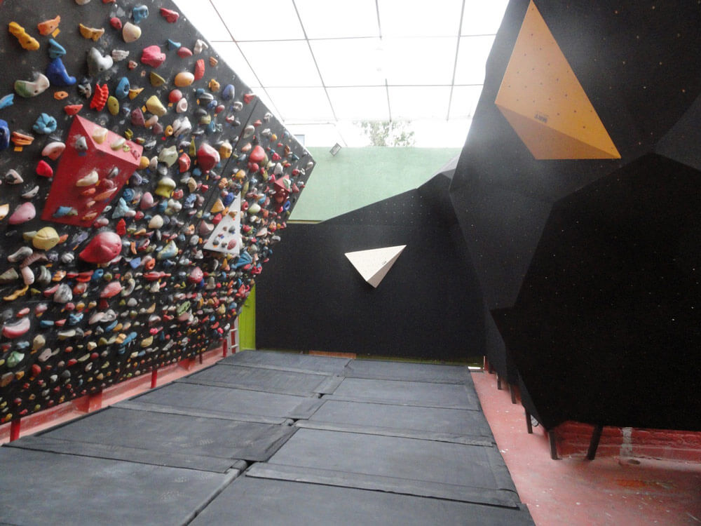 En mi caso fueron dos principalmente, un muro natural de unos 15 metros de altura por menos de ancho al que mis amigos y yo conocíamos como “El Cañoncito” o Madín y que después alguien bautizó como la Piedra del Sol. Prácticamente diario subía en mi bici a hacer algunas travesías, cada vez intentando eliminar más agarres y pisaderas para que siempre fuera un reto. Después fue necesario seguir subiendo la dificultad y la altura, sin meditar que una caída de más de 5 ó 10 metros podía ser fatal (afortunadamente nunca caí). El otro sitio fue mi primer muro artificial, una tabla de 1.22 por 2.44, con unos 60 grados de inclinación y con muchos más T-nuts que garres, situada en el cuarto de lavado de casa y aunque parezca tonto, las caídas ahí podían ser tan peligrosas como en el Cañoncito. Pasé años paseándome por las regletas de Madín y por los 15 agarres del muro.