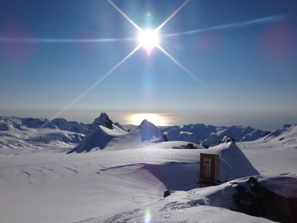 Estuvimos confinados en el refugio por dos días, sin siquiera poder salir a la letrina, ya que resultaba muy peligroso ir y en caso de hacerlo, debías ponerte el arnés, los crampones y asegurarte a una cuerda fija que te dirigía al baño. Incluso hubo un momento que pensamos que iba a salir volando el techo del refugio. El mal tiempo y el acortamiento de la buena ventana nos orilló a escoger una posible vía en Pioneer Ridge.