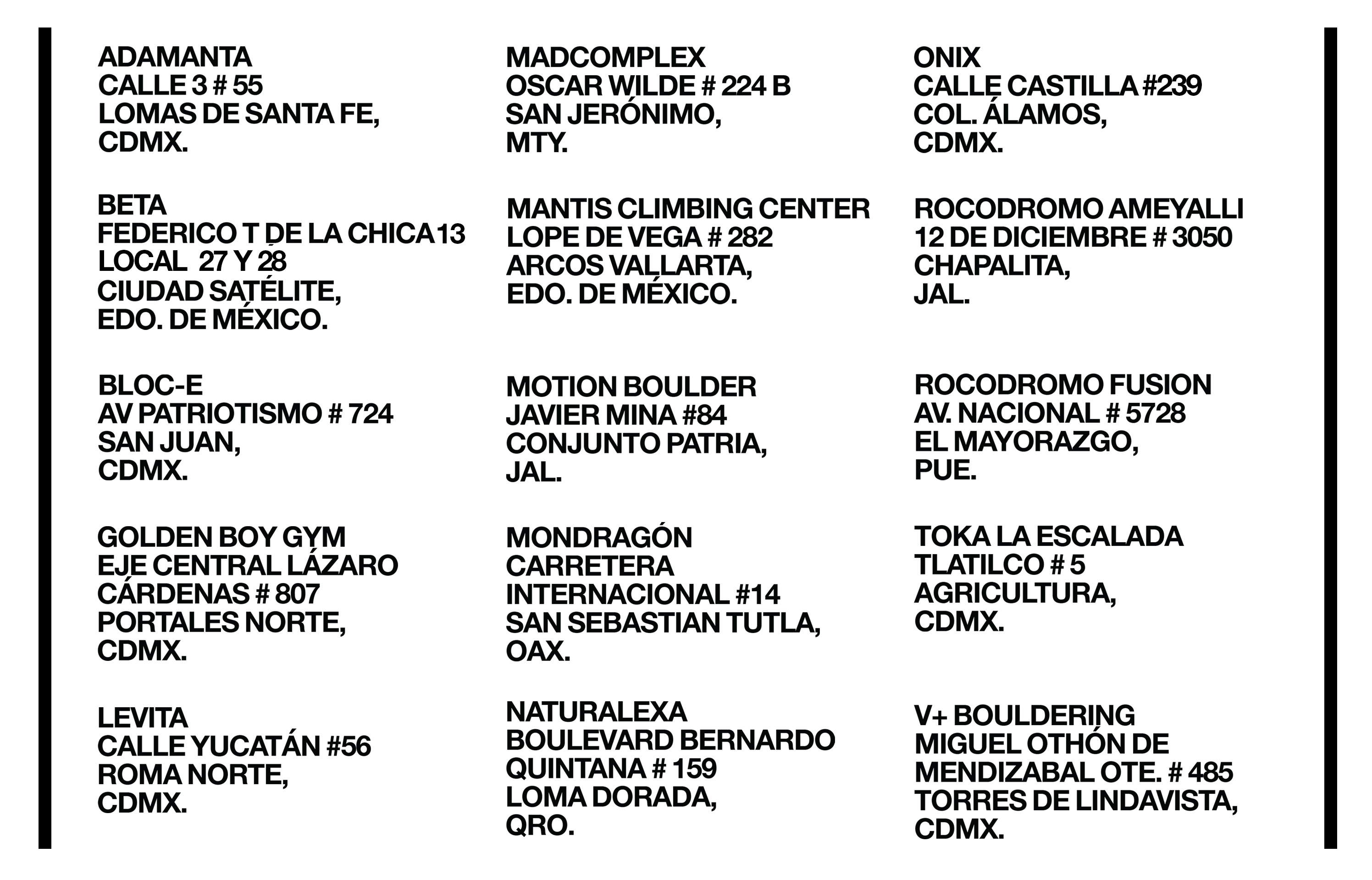 Aquí la lista de muros participantes en Walls are Meant for Climbing en México:
